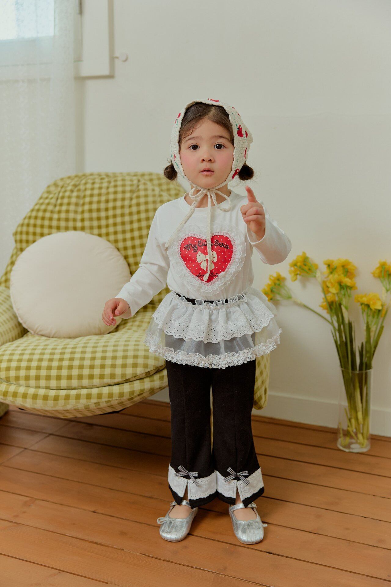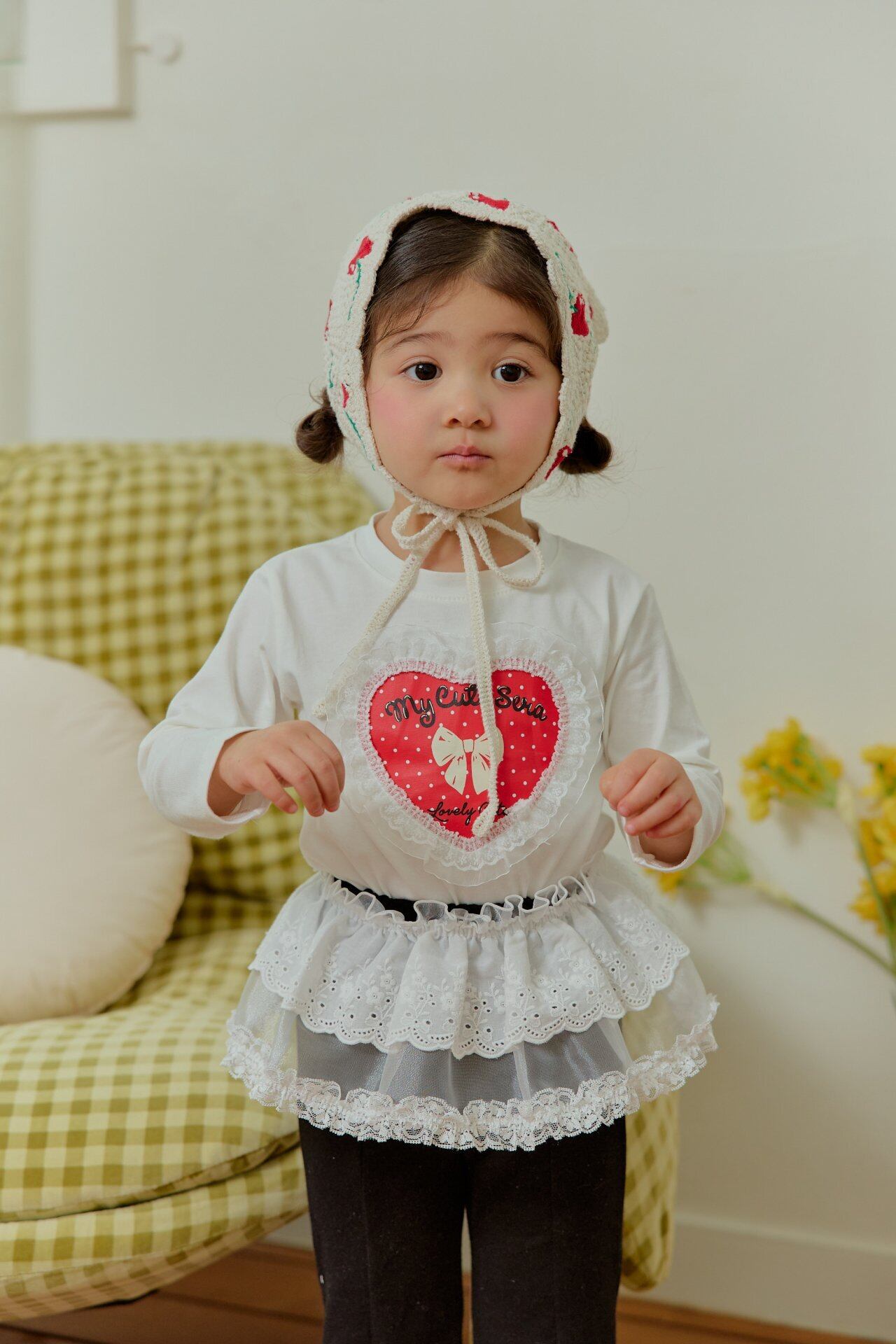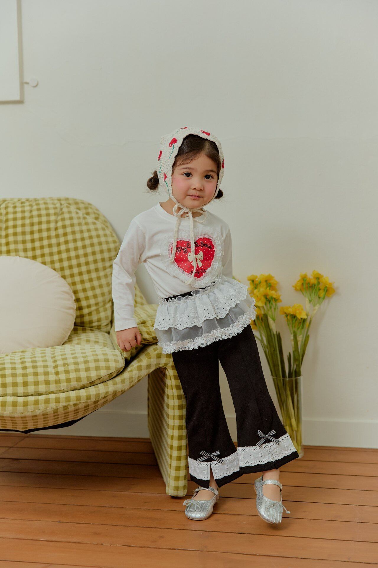 ▶︎予約[ sera ]KIDS - lace heart dot T