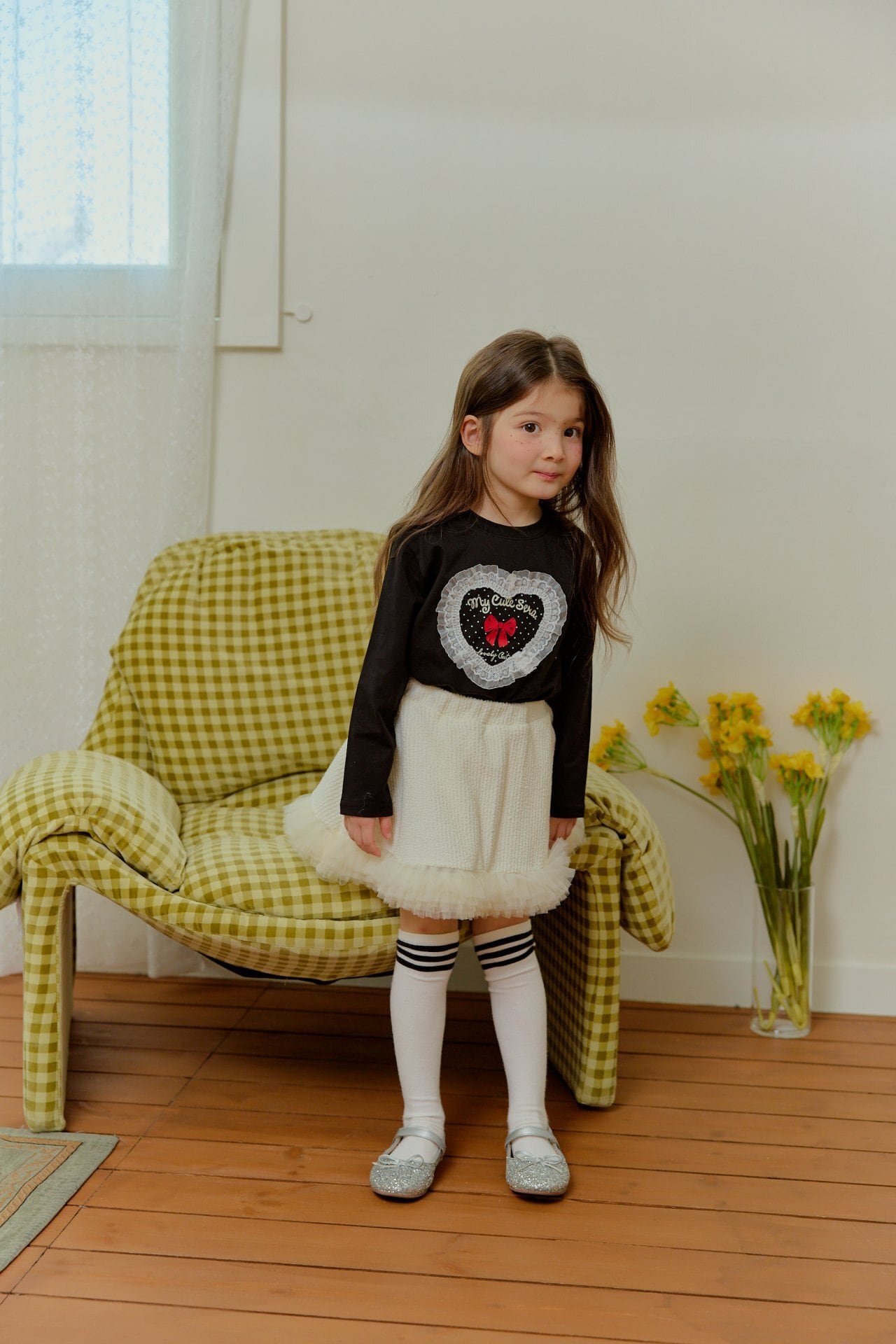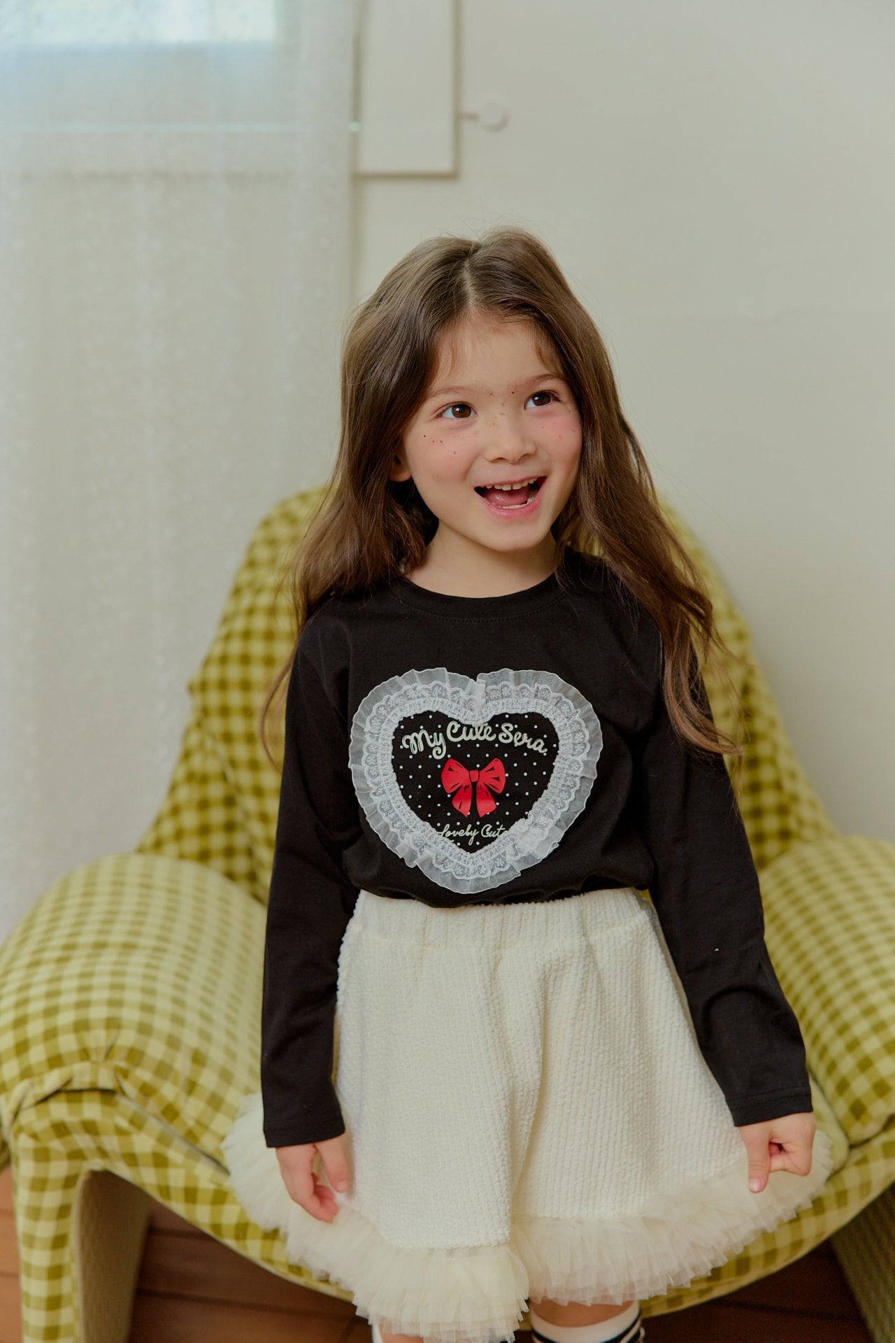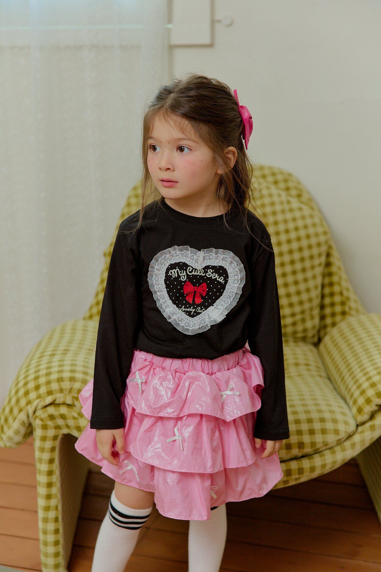 ▶︎予約[ sera ]KIDS - lace heart dot T