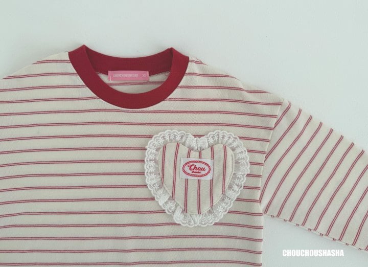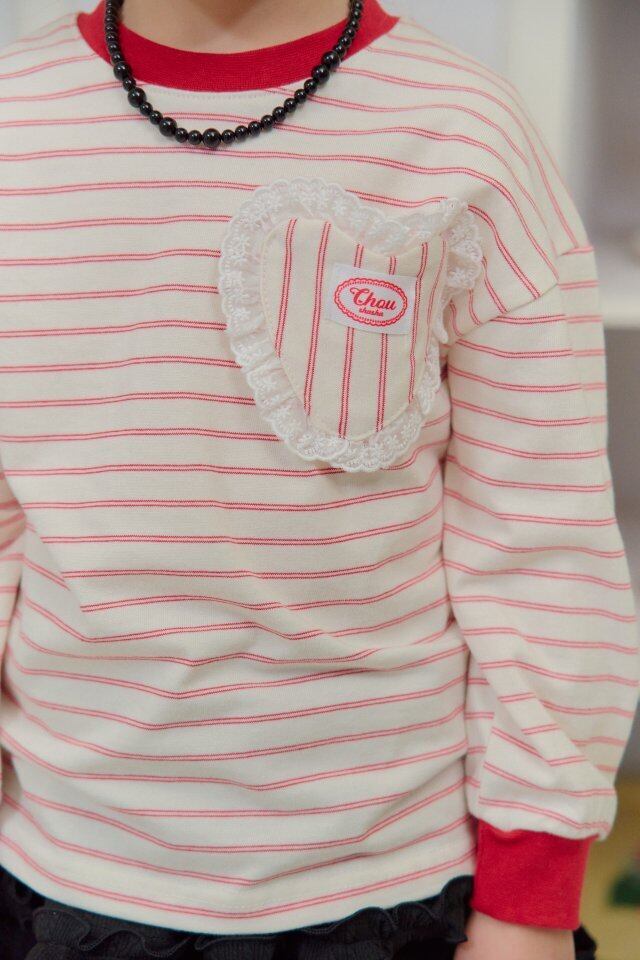 ▶︎予約[ chouchoushasha ]heart stripe T / red
