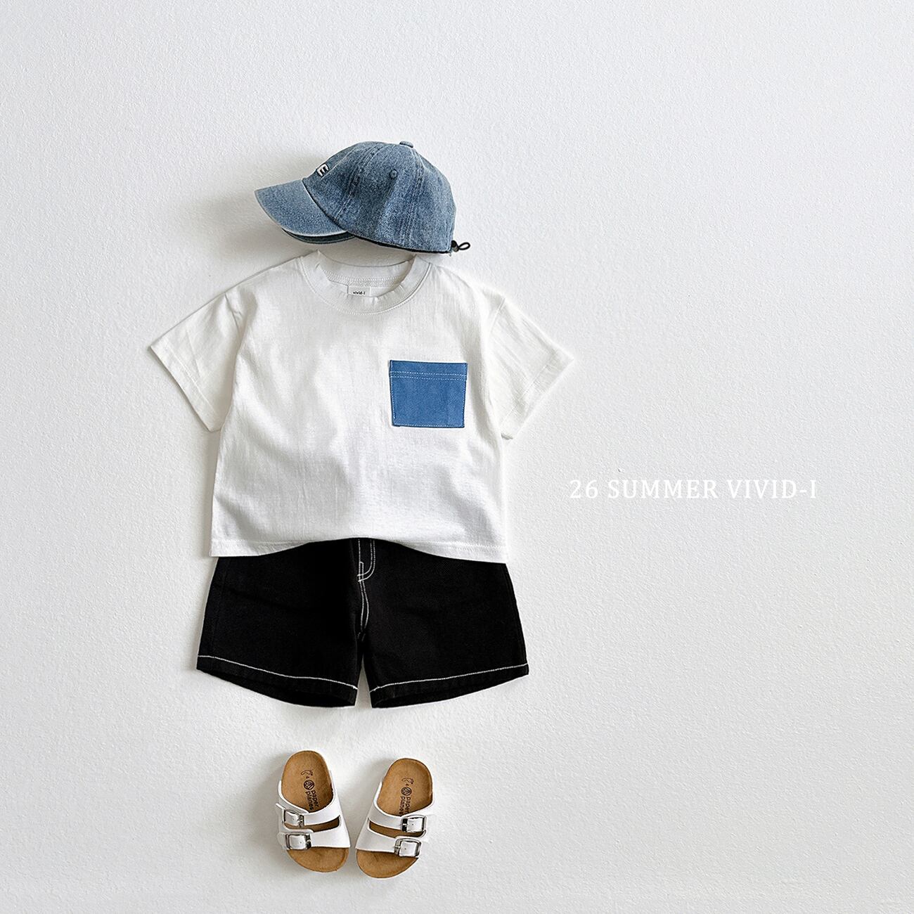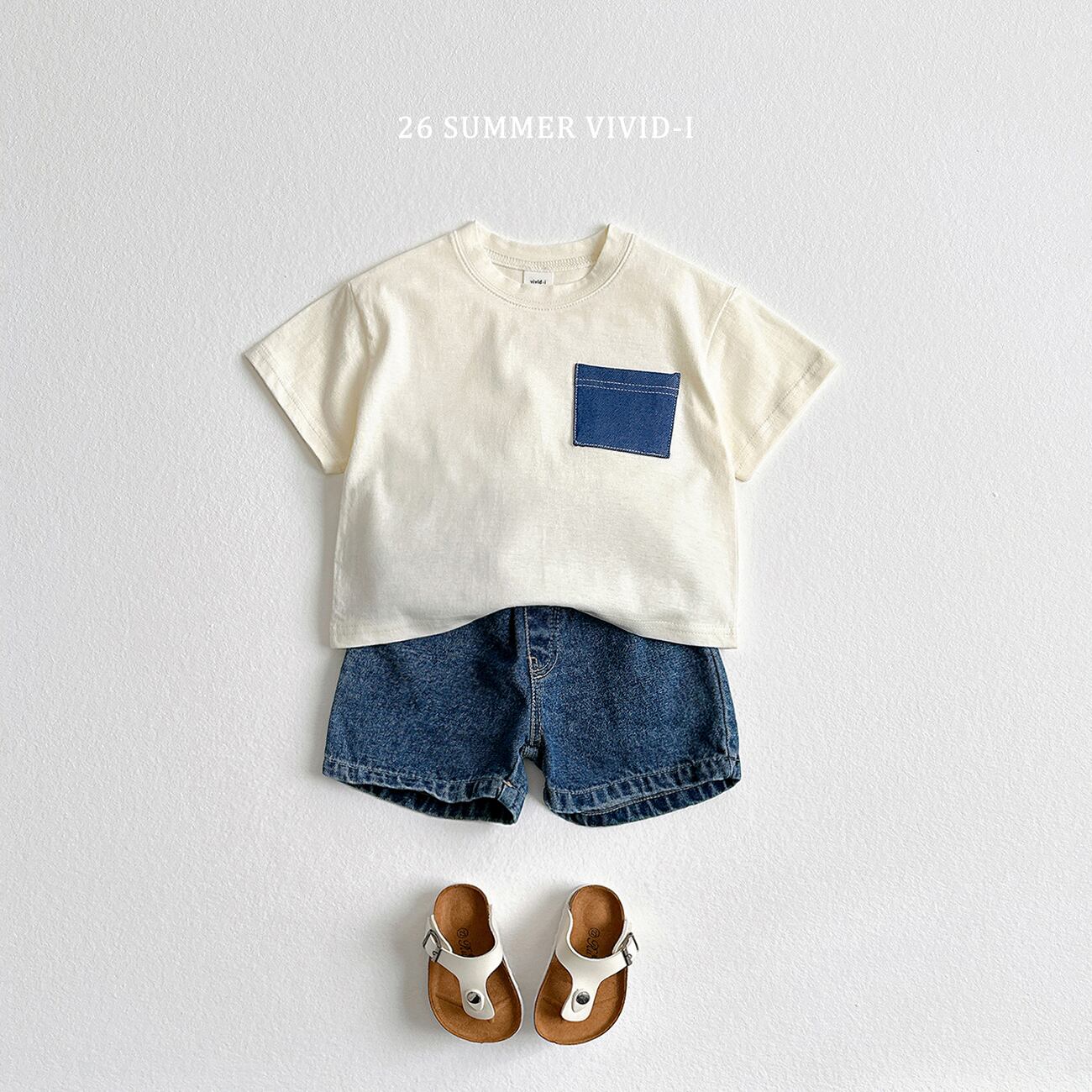 ▶︎予約[ VIVID-I ]Kids&Jr - pocket denim short sleeve T